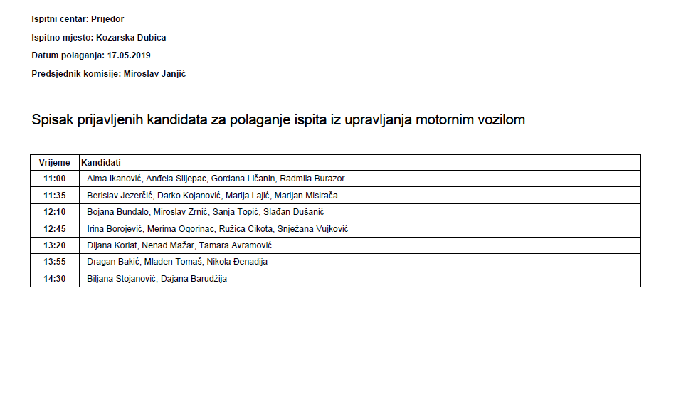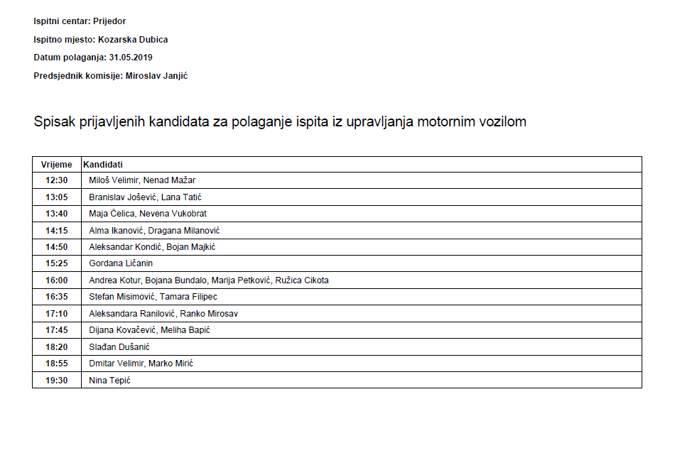 Kandidati koji su se prijavili za ovaj termin trebaju doći 5 minuta prije zakazanog termina i ponijeti olovku i ličnu kartu.
