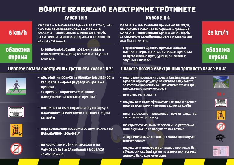 Cilj provođenja ove preventivne aktivnosti jeste povećanje nivoa bezbjednosti saobraćaja u Republici Srpskoj kroz povećanje bezbjednosti vozača električnih trotineta kojih je sve više na javnim putevima u Republici Srpskoj, što za posljedicu ima povećanje konfliktnih situacija i događanje saobraćajnih nezgoda sa ovim učesnicima u saobraćaju. Korisnicima električnih trotineta će se ukazati na opasnosti kojima su izloženi kada se kreću na javnim putevima, a upoznaće se i sa zakonskim odredbama kojih se moraju pridržavati dok koriste lako električno vozilo (električni trotinet, skejtbord, haverbord i dr.).